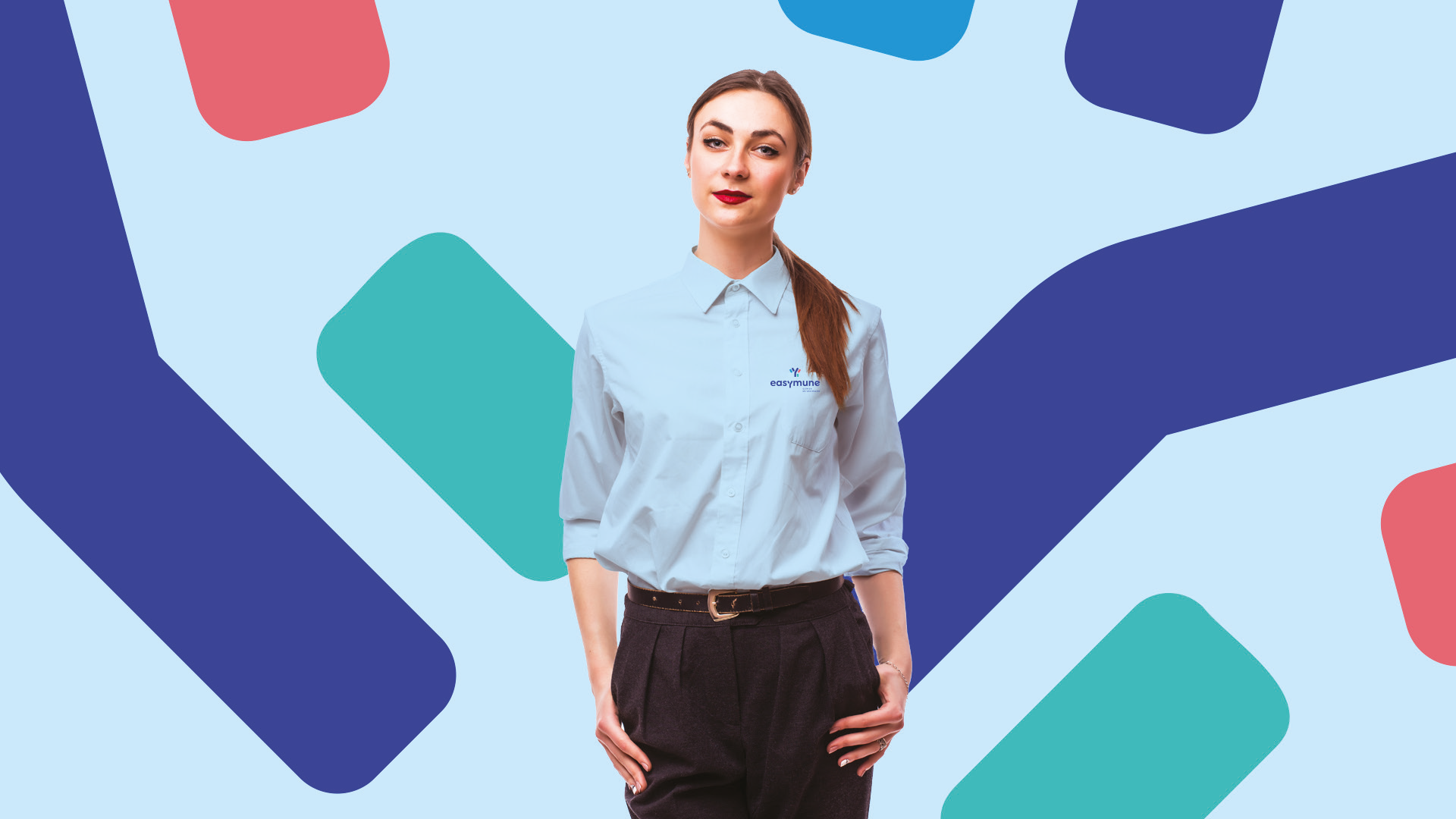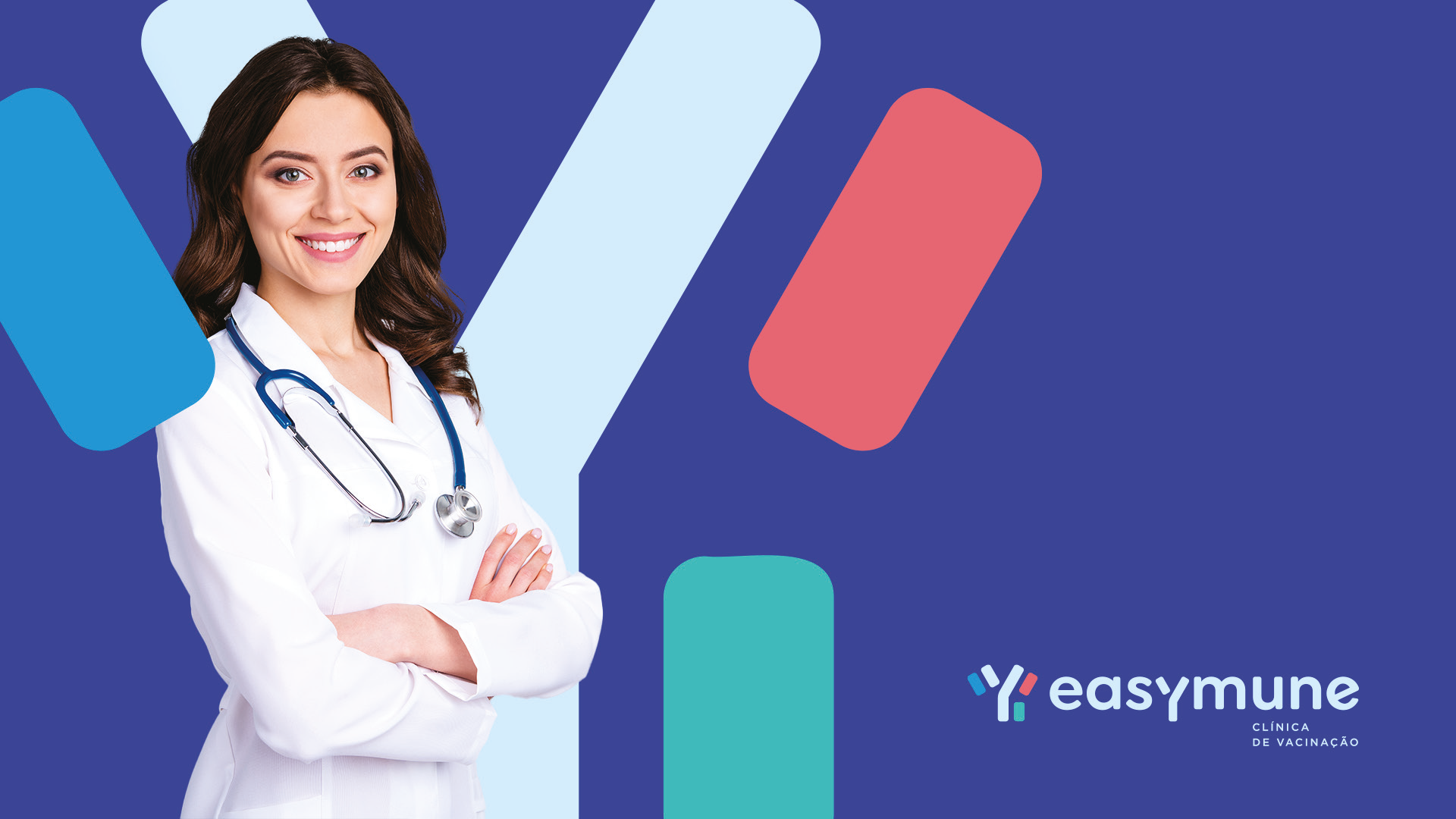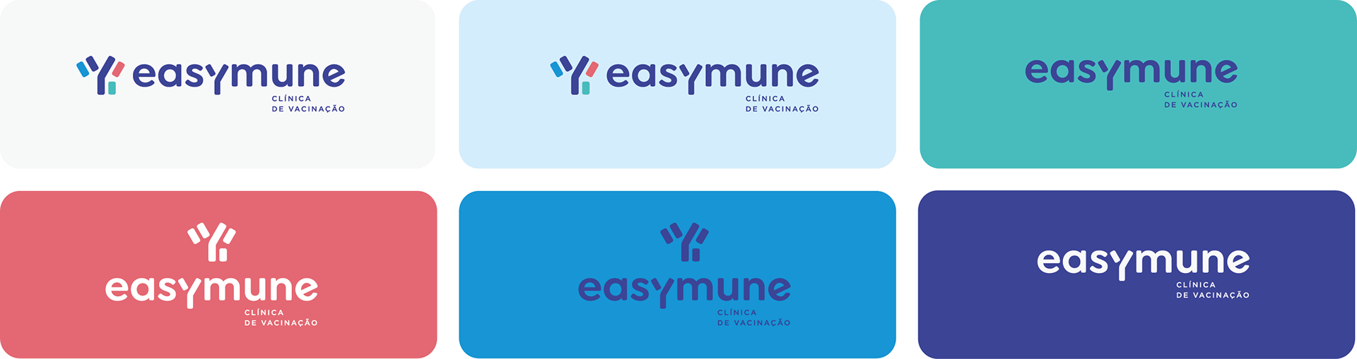Através de formas simples, mas robustas, e uma paleta de cores suave e jovial, o logotipo da Easymune busca transmitir confiança e amistosidade.